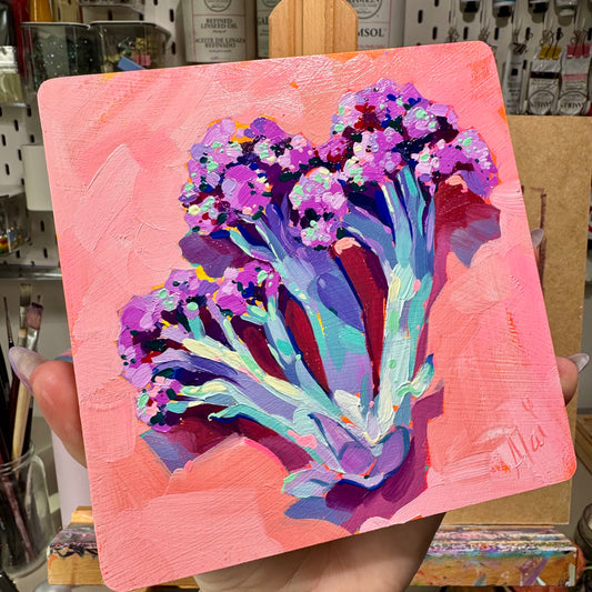 Purple Cauliflower - Original Oil Painting - Vibrant Vegetable Art - 6x6 inches