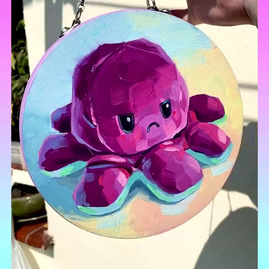 Blue/Violet Octoplushie Reversible Original Oil Painting - 6.3 inches