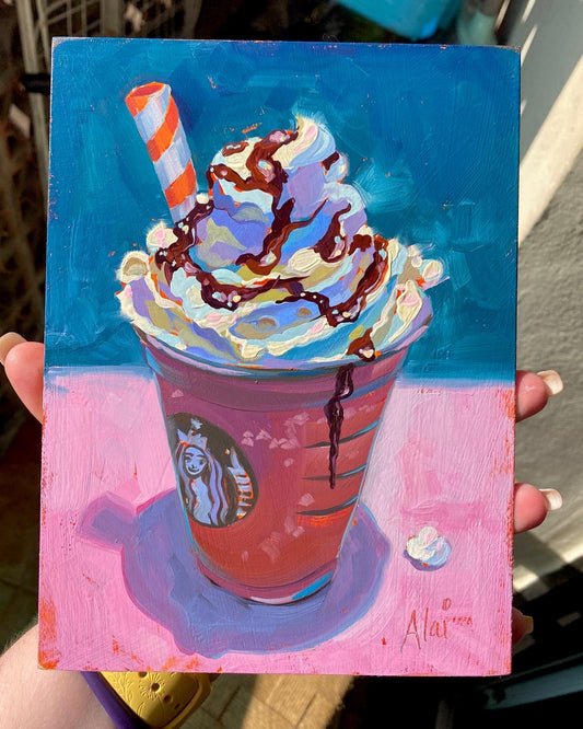Starbucks's Iced Latte - Original Oil Painting - Coffee Art - 6 inches