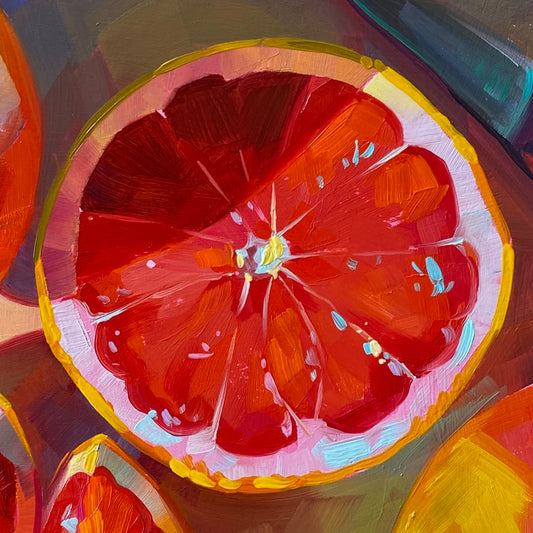Grapefruits in the Evening - Original Oil Painting - Citrus Wall Art - 9 inches