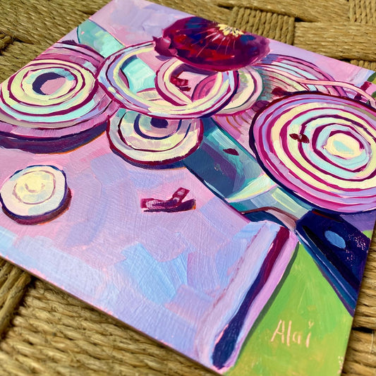 Cutting Onions - Original Oil Painting - Kitchen Art - 8 inches