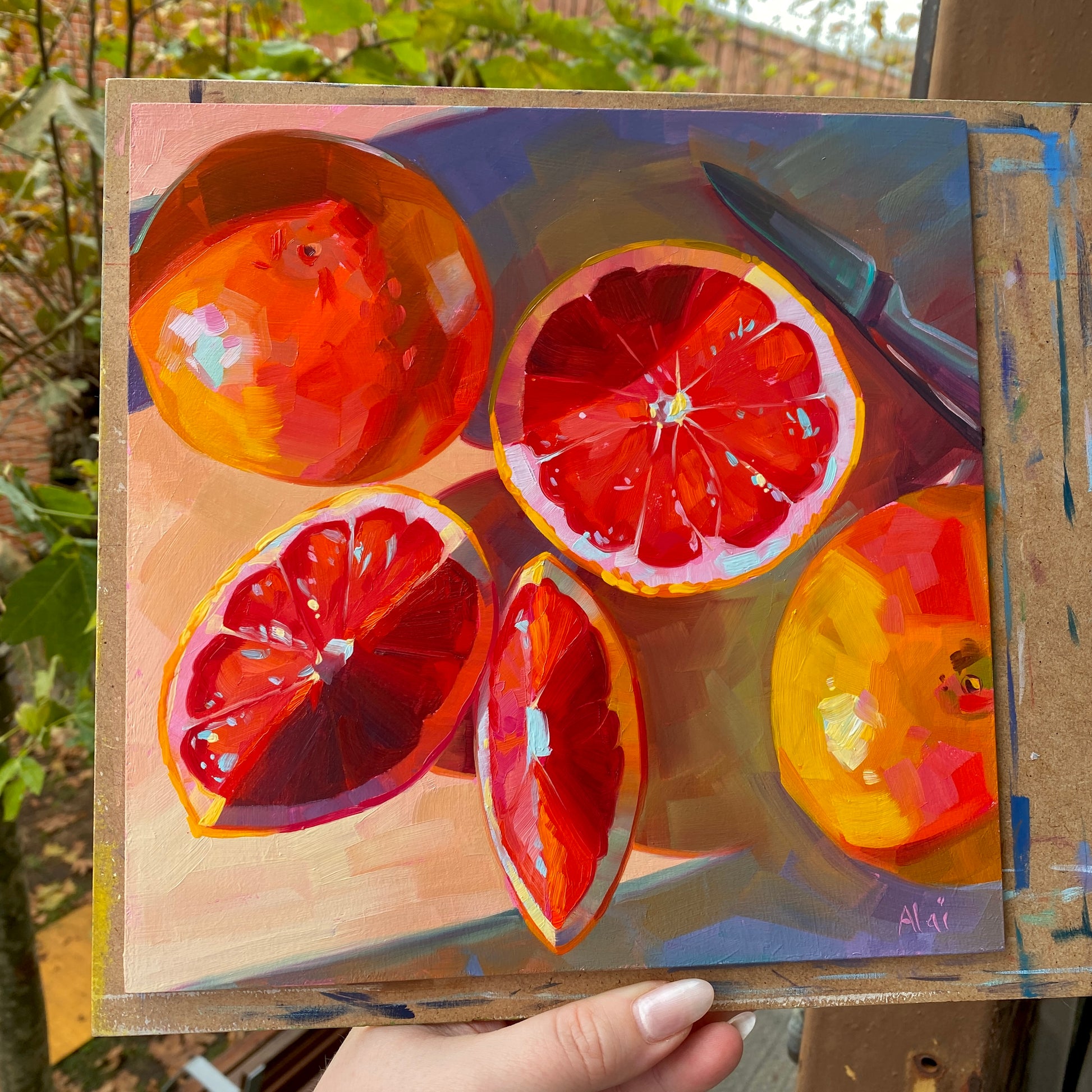 - Textural Depth: The thick paint application makes the segments of the grapefruit look bursting with juice and flavor.