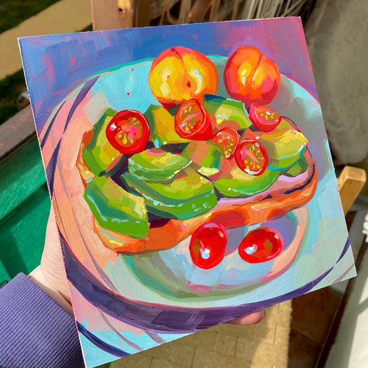 Avocado Toast III - Original Oil Painting - 8x8 inches