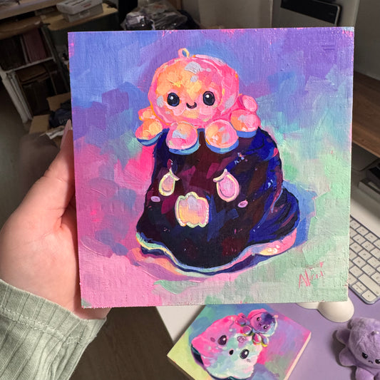 RAWR plushy ghost - Original Oil Painting - Cute Pop Art - 6x6 inches
