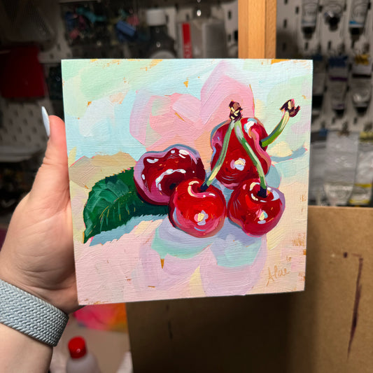 Small cherries - Original Oil Painting - Vibrant Fruit Art - 6x6 inches