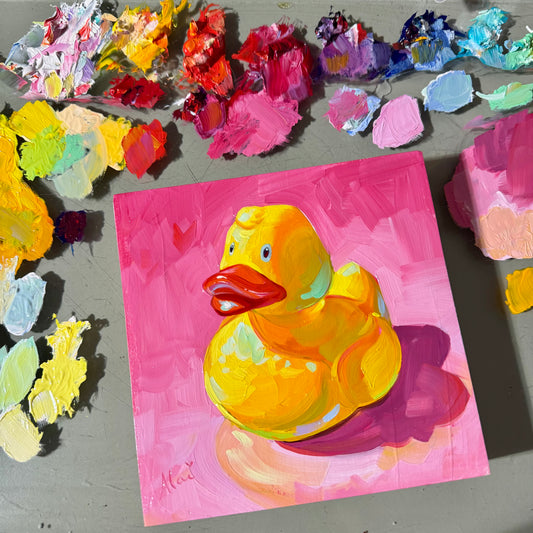 Rubber Duck - Original Oil Painting - Vibrant Pop Art - 6x6 inches