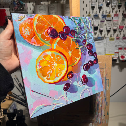 Rosemary, citrus and berries - Original Oil Painting - Fresh Winter Still Life - 10x10 inches