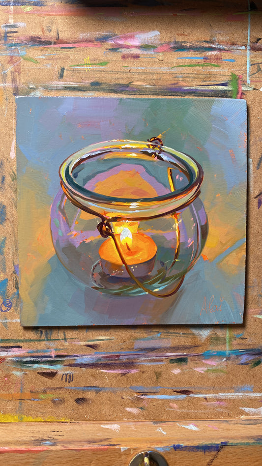 Candle in a Pot - Original Oil Painting - 6x6 inches