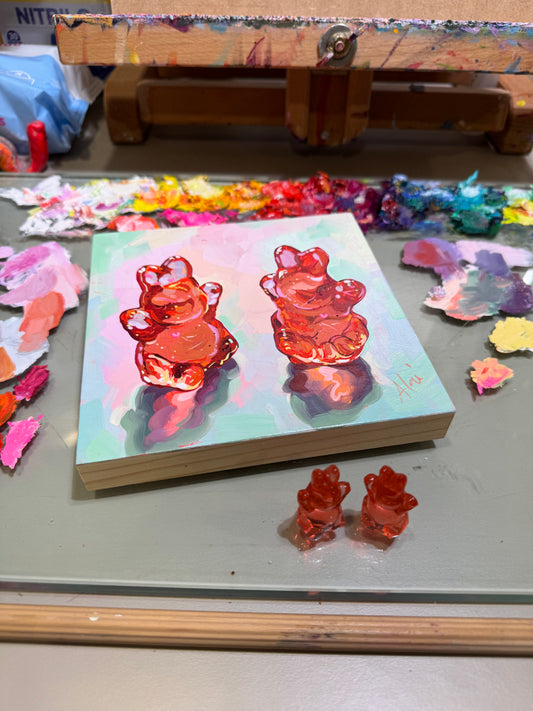 Raspberries and gummies - Original Oil Painting