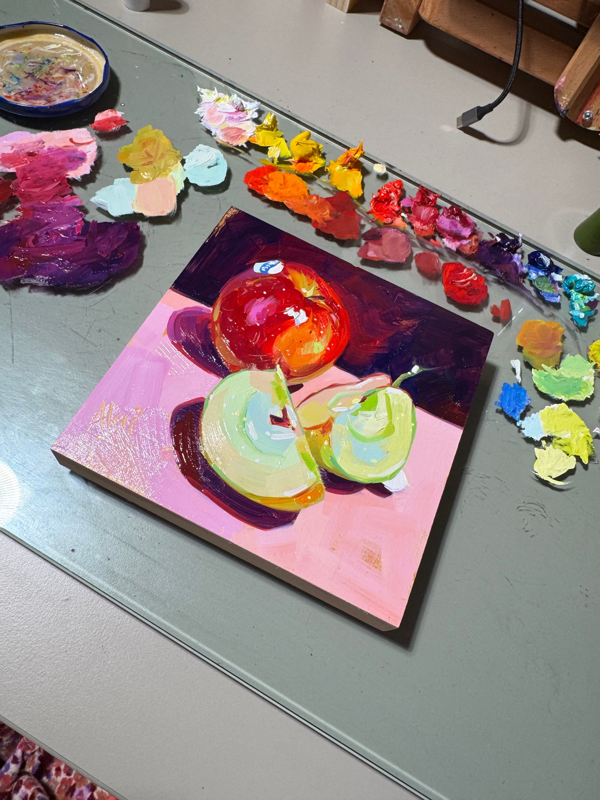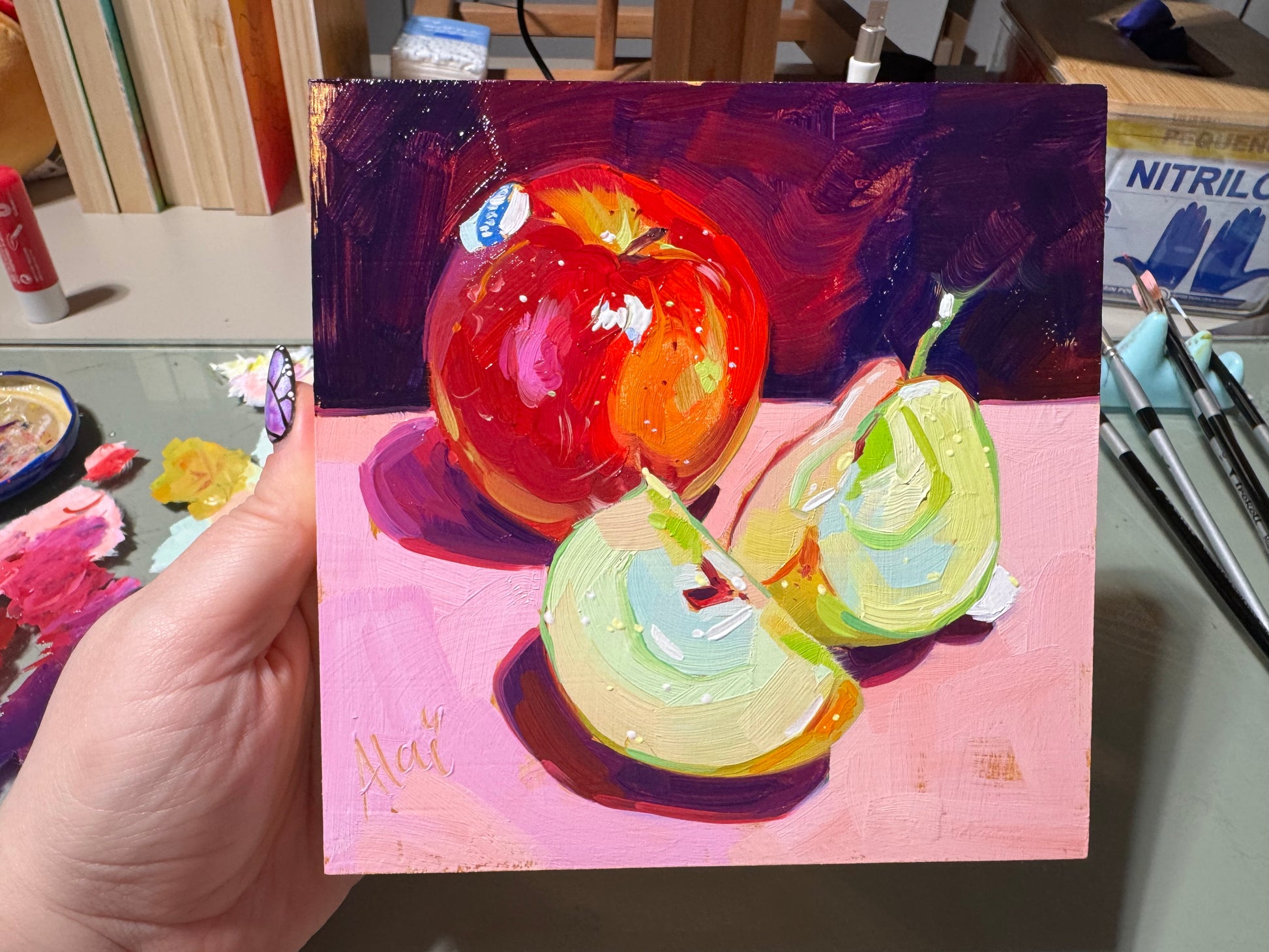Oil painting on hand primed cradled wood canvas 15x15 cm - 6x6 inches.