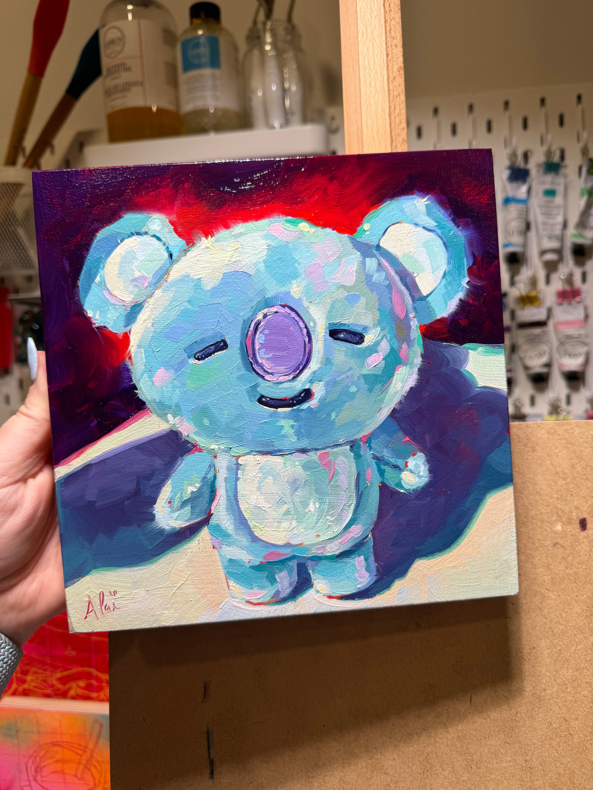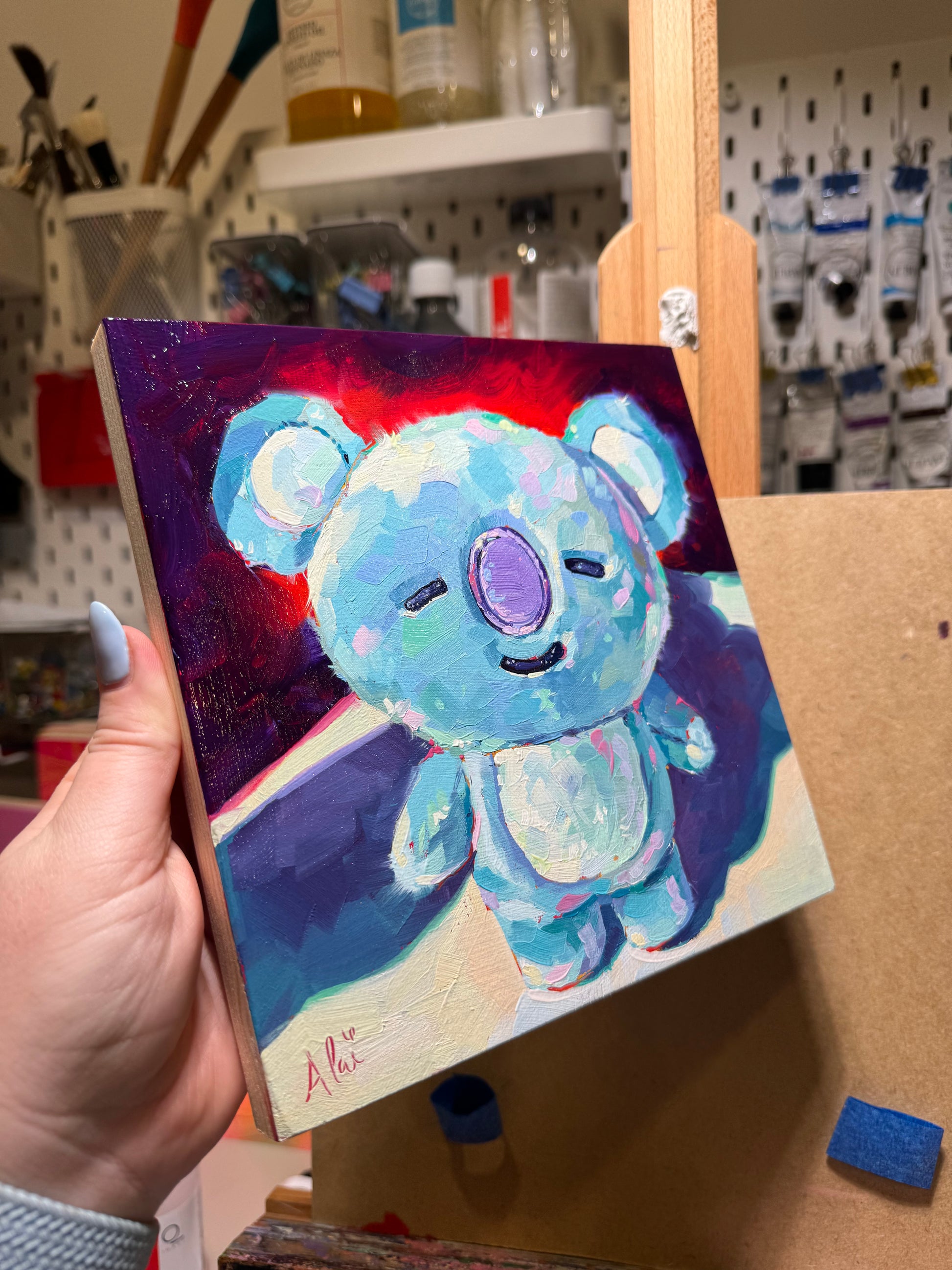 Oil painting on hand primed cradled wood canvas 20x20 cm - 8x8 inches.