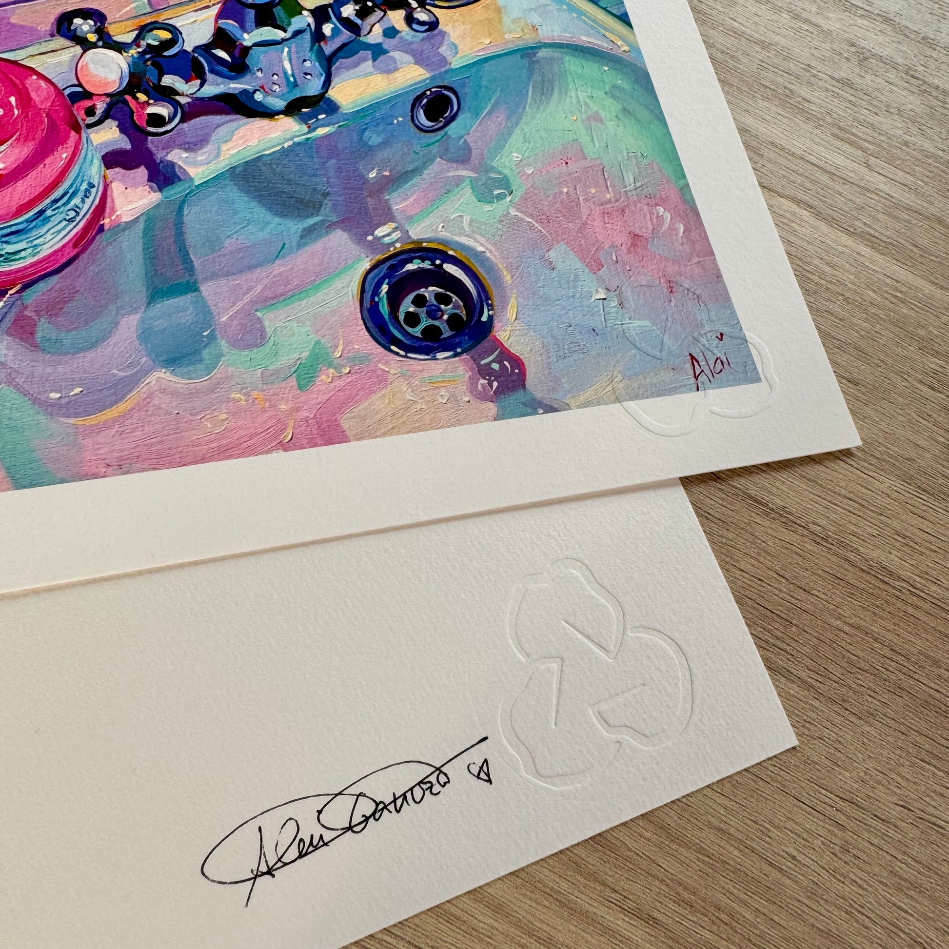 • Giclée print with pigment-based inks on acid-free, archival Hahnemühle German Etching paper