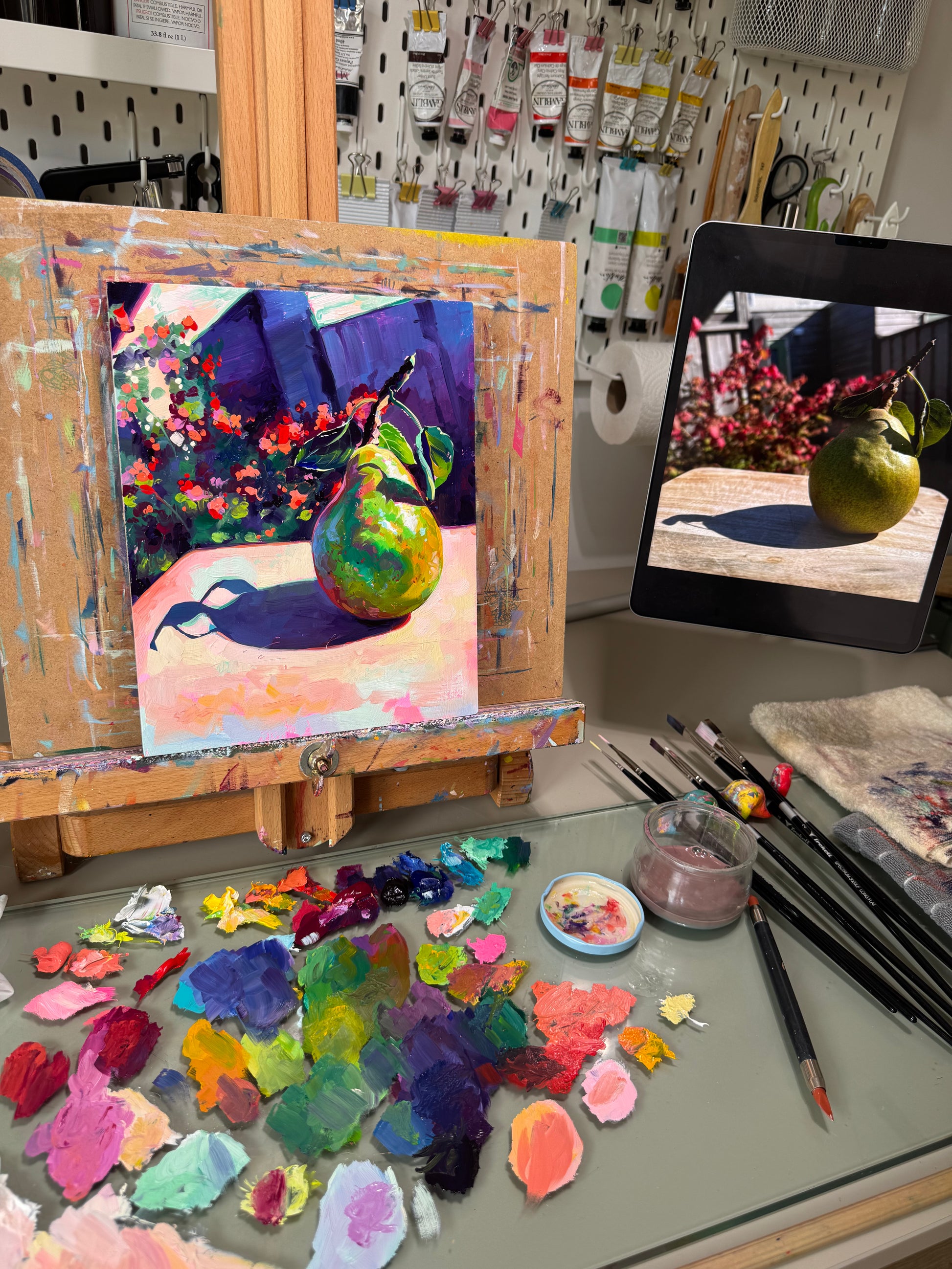 Oil painting on hand primed cradled wood canvas 20x25 cm - 8x10 inches.