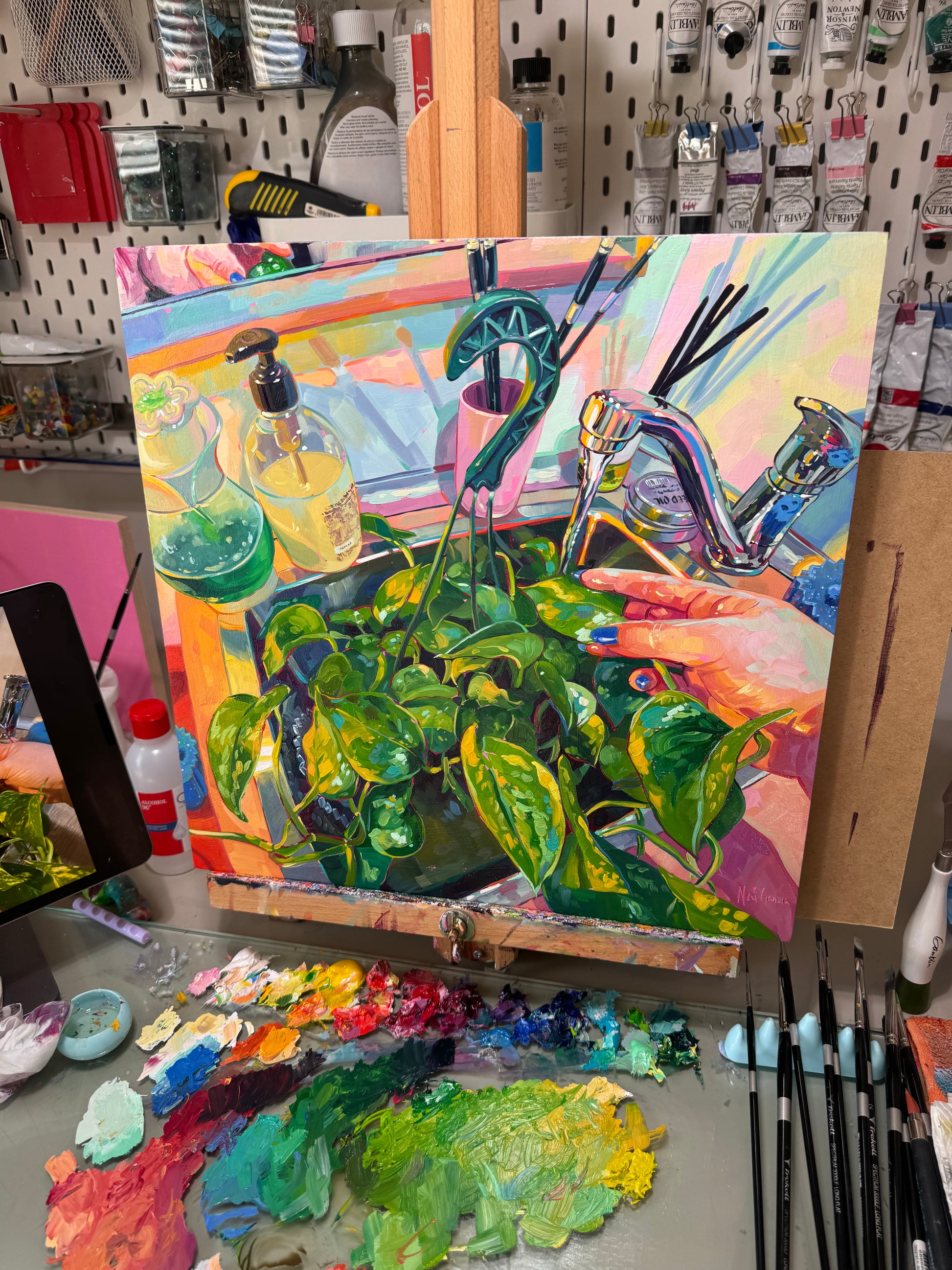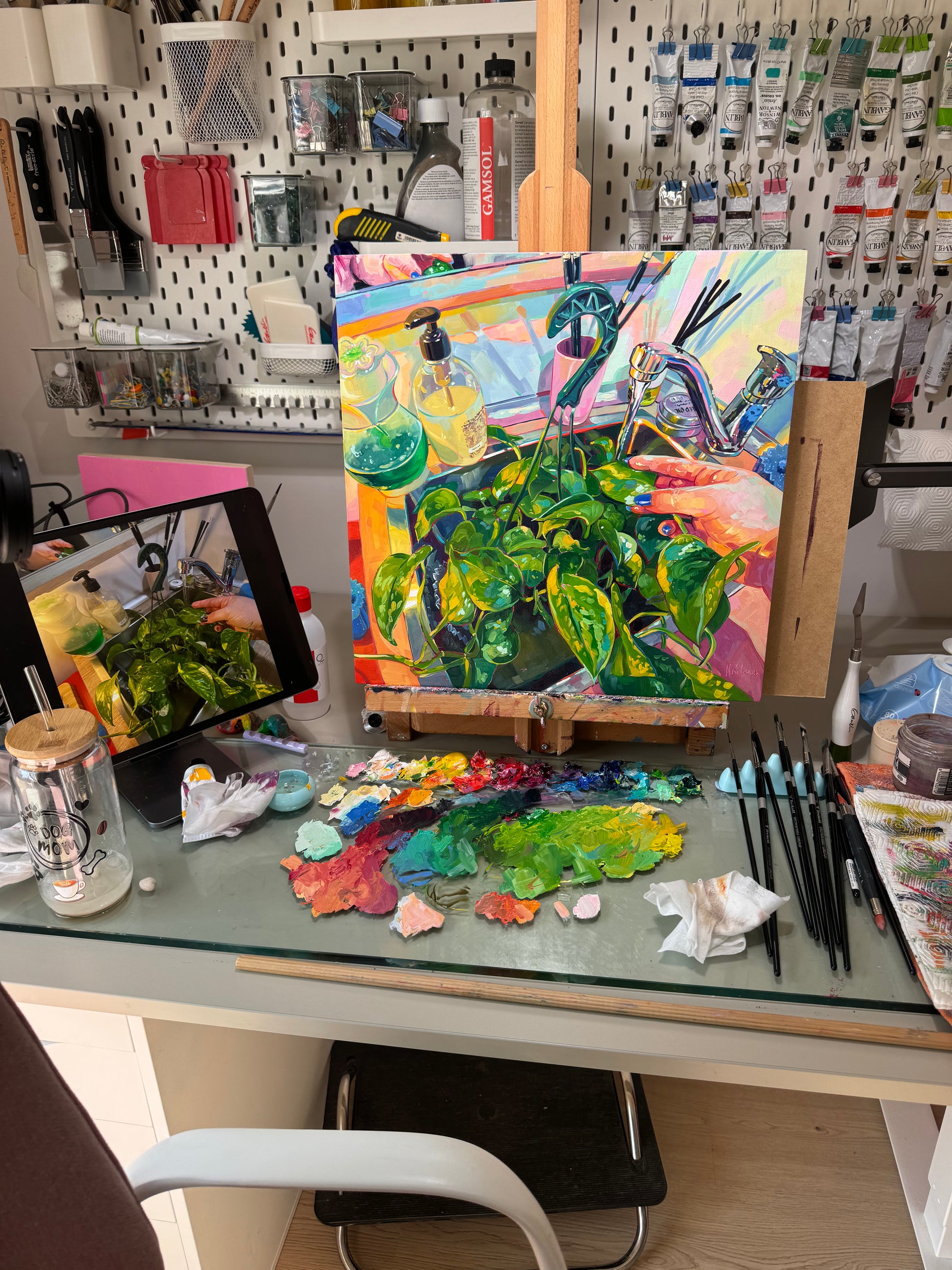 Oil painting on hand primed cradled wood canvas 40x40 cm - 16x16 inches.