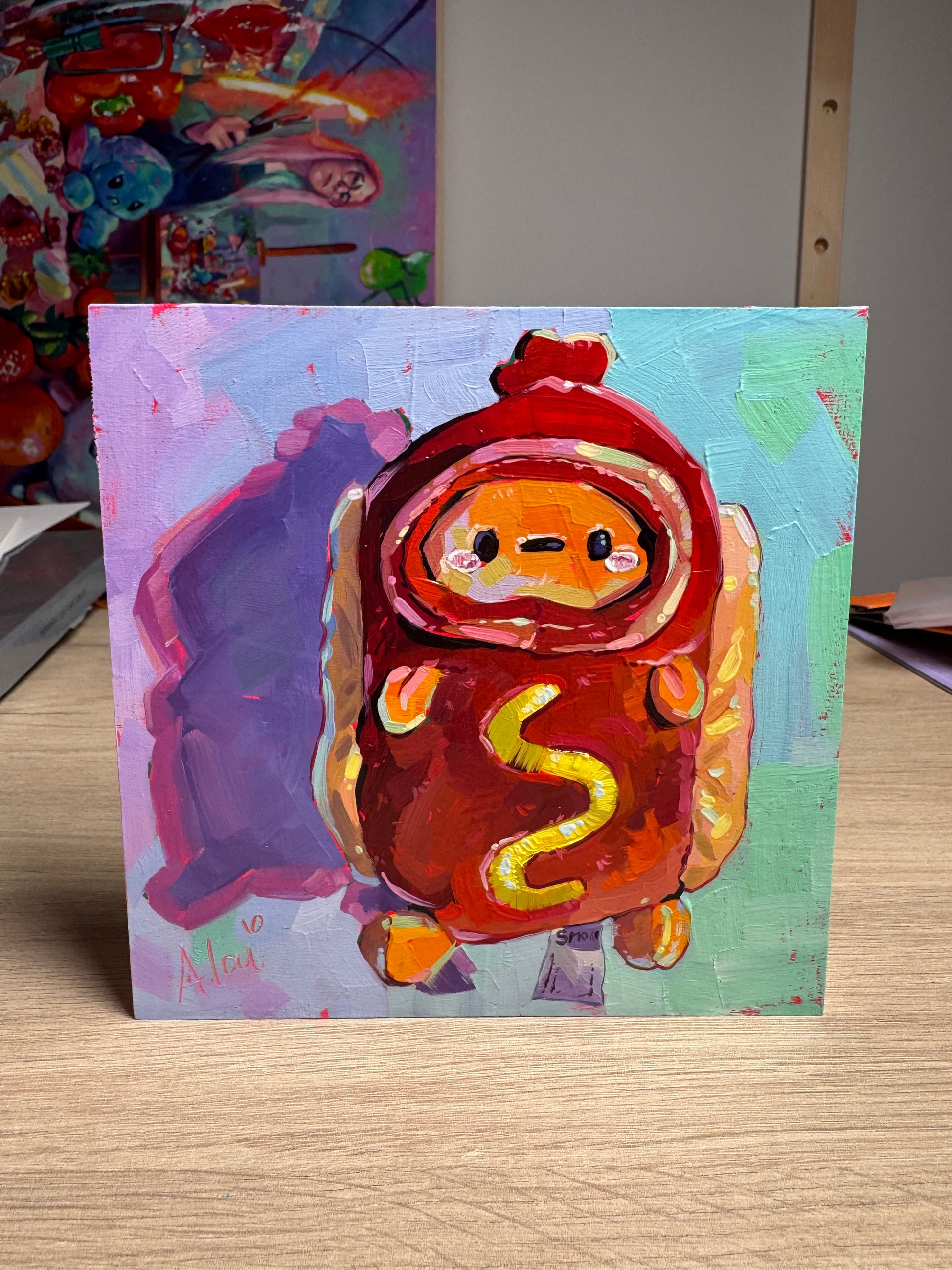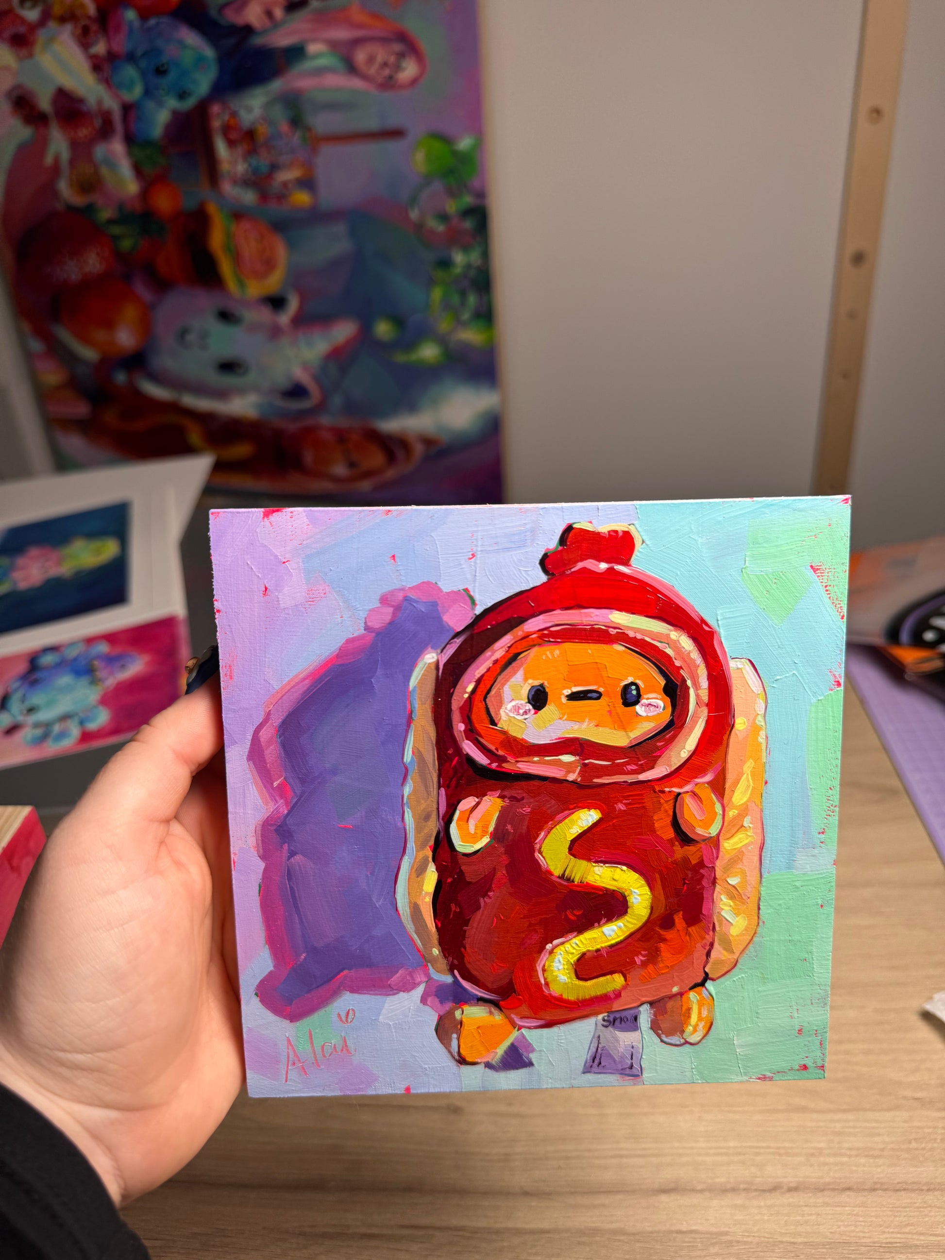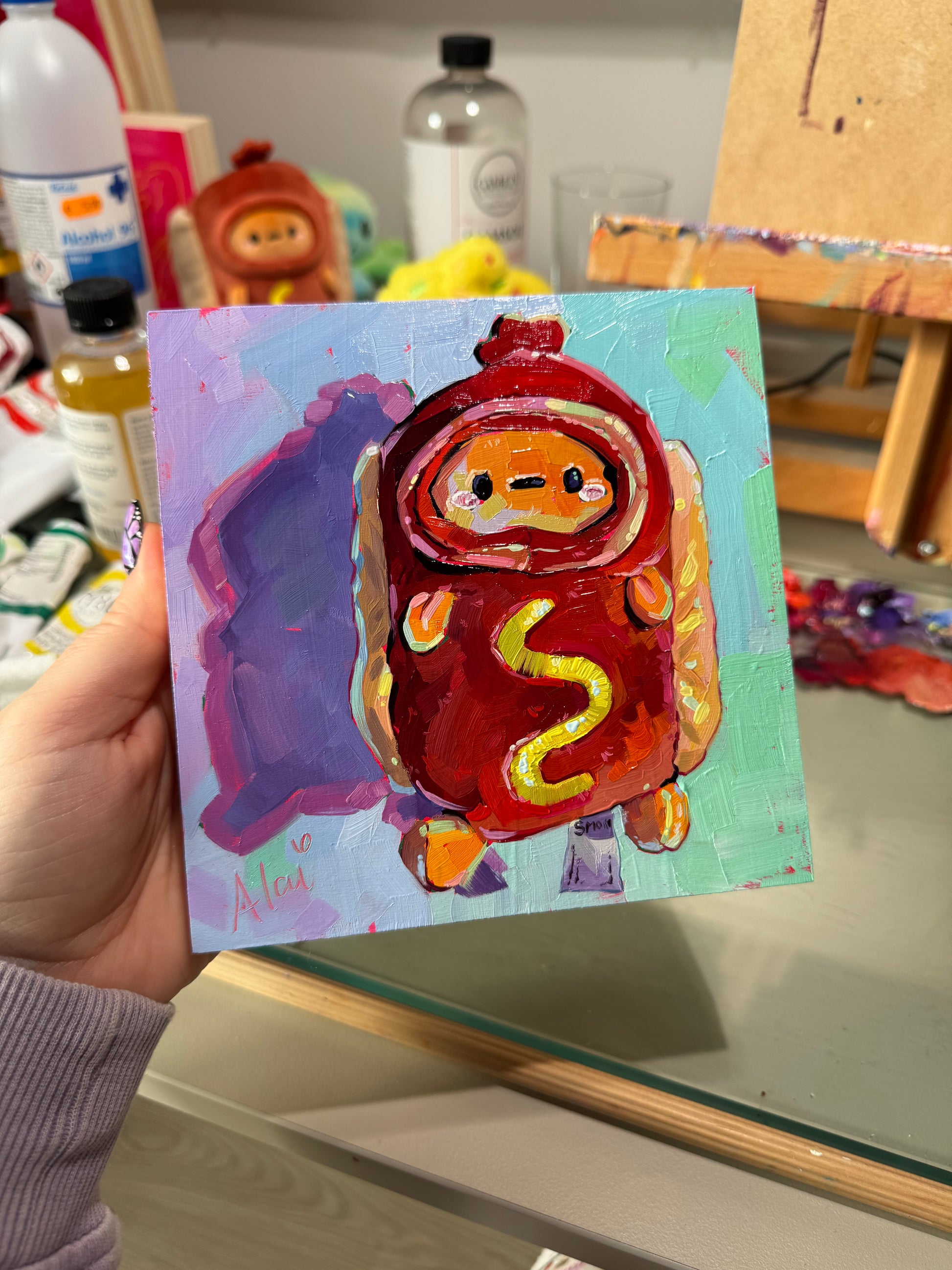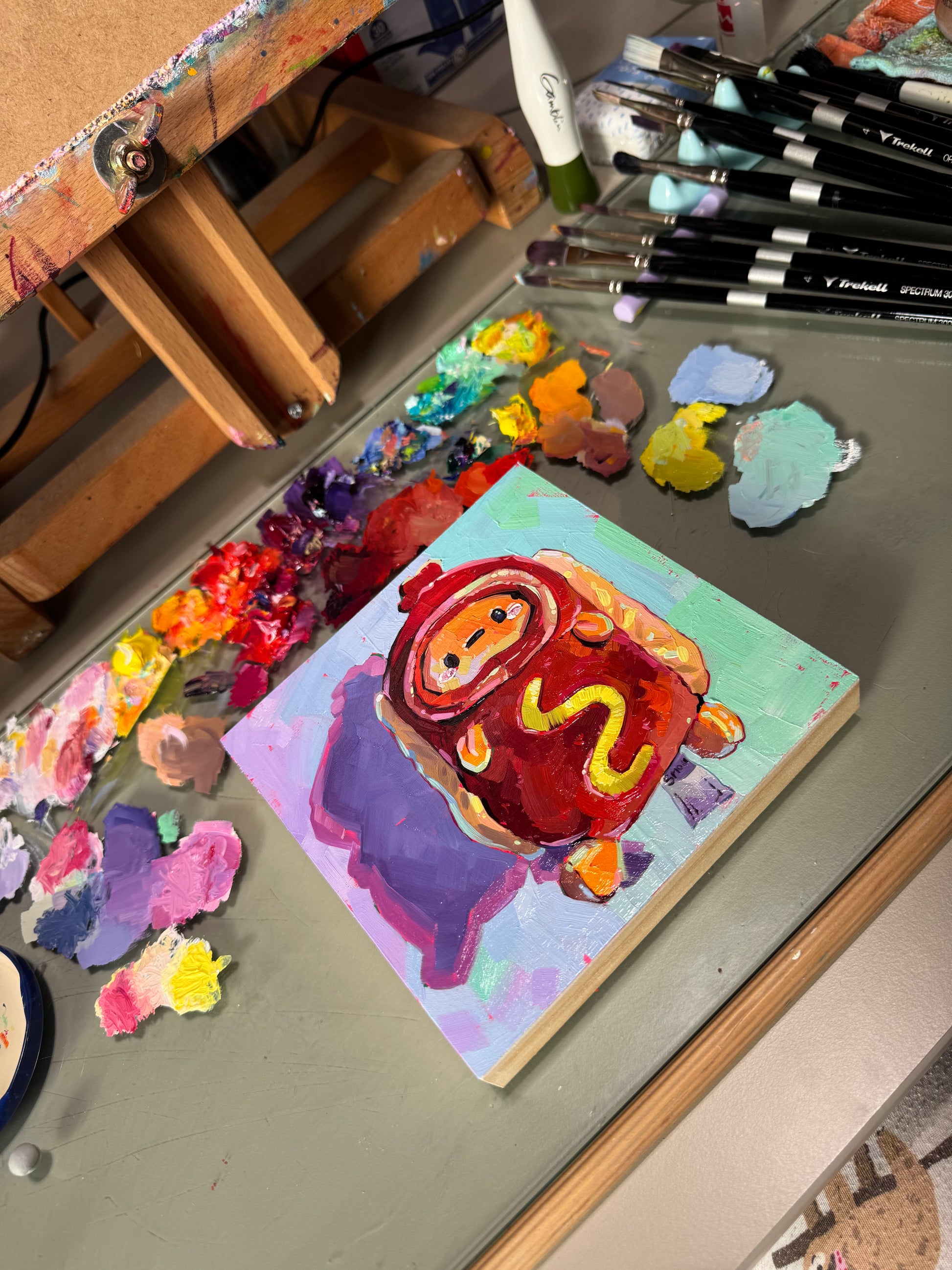 Oil painting on hand primed cradled wood canvas 15x15 cm - 6x6 inches.