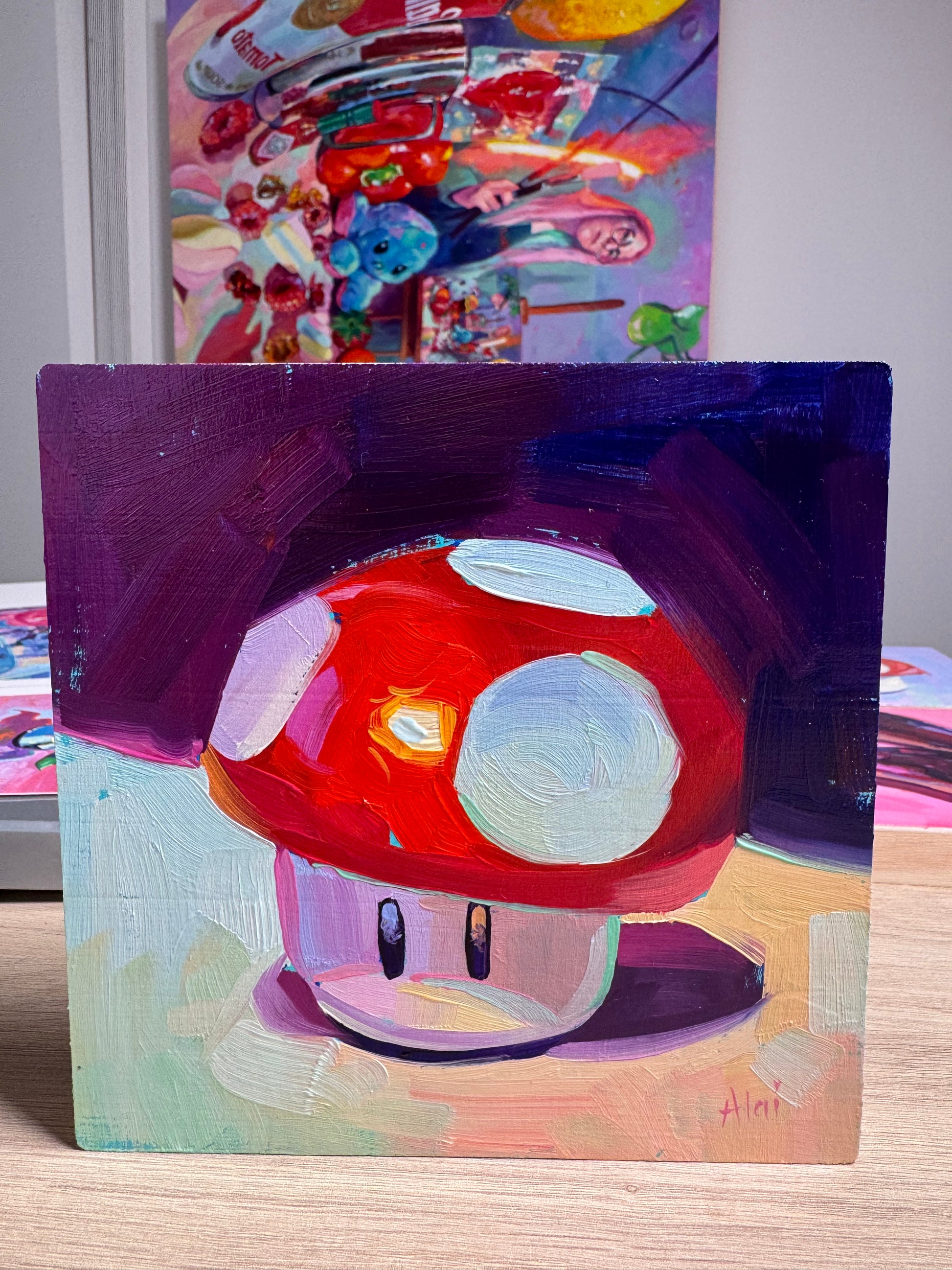 Oil painting on hand primed cradled wood canvas 15x15 cm - 6x6 inches.