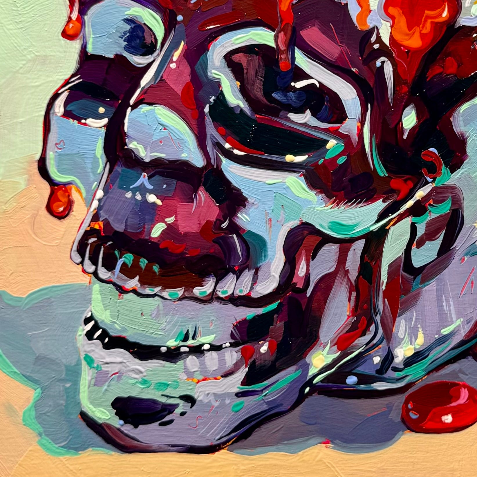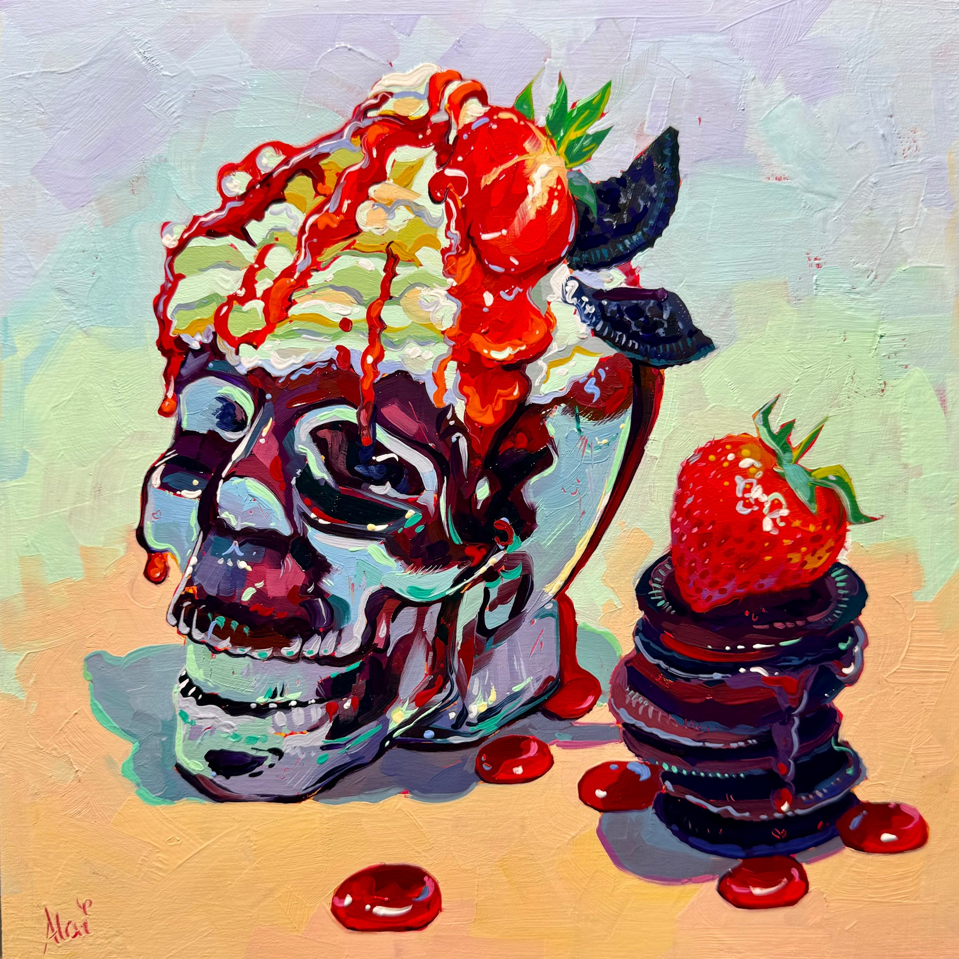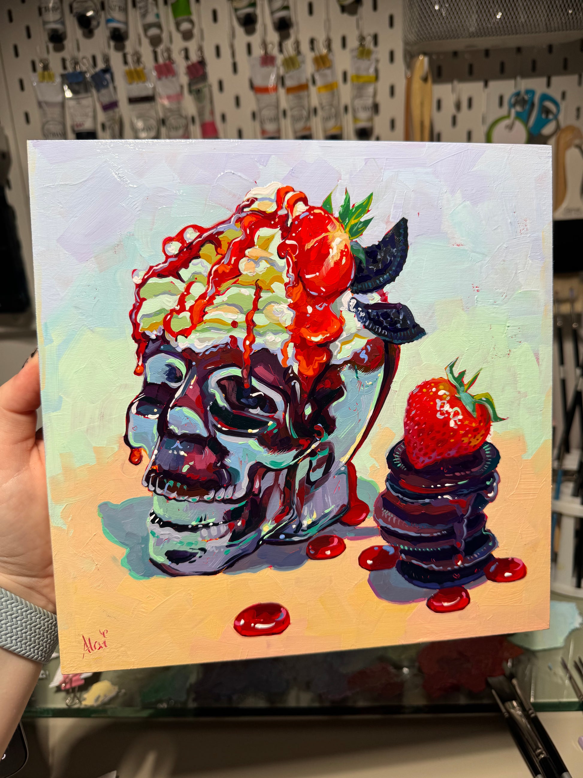 Oil painting on hand primed cradled wood canvas 25x25 cm - 10x10 inches. 💀Ref by Izabela Anna Krajnik on Instagram!