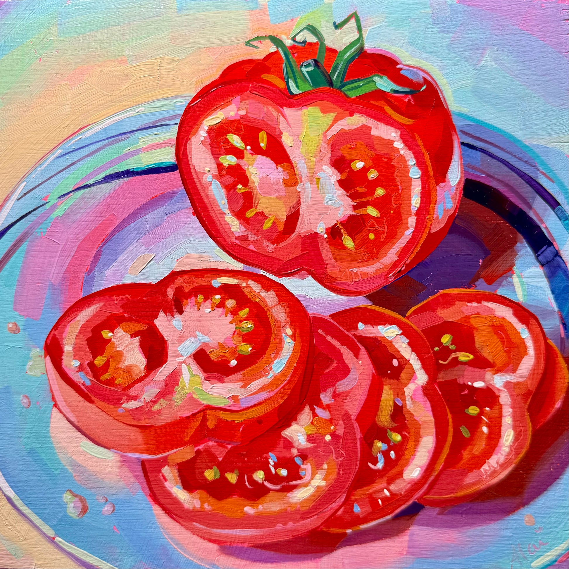 Oil painting on hand primed cradled wood canvas 20x20 cm - 8x8 inches.