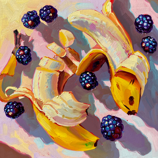 Bananas and Blackberries - Fine Art Giclée Print - Vibrant Fruit Still Life