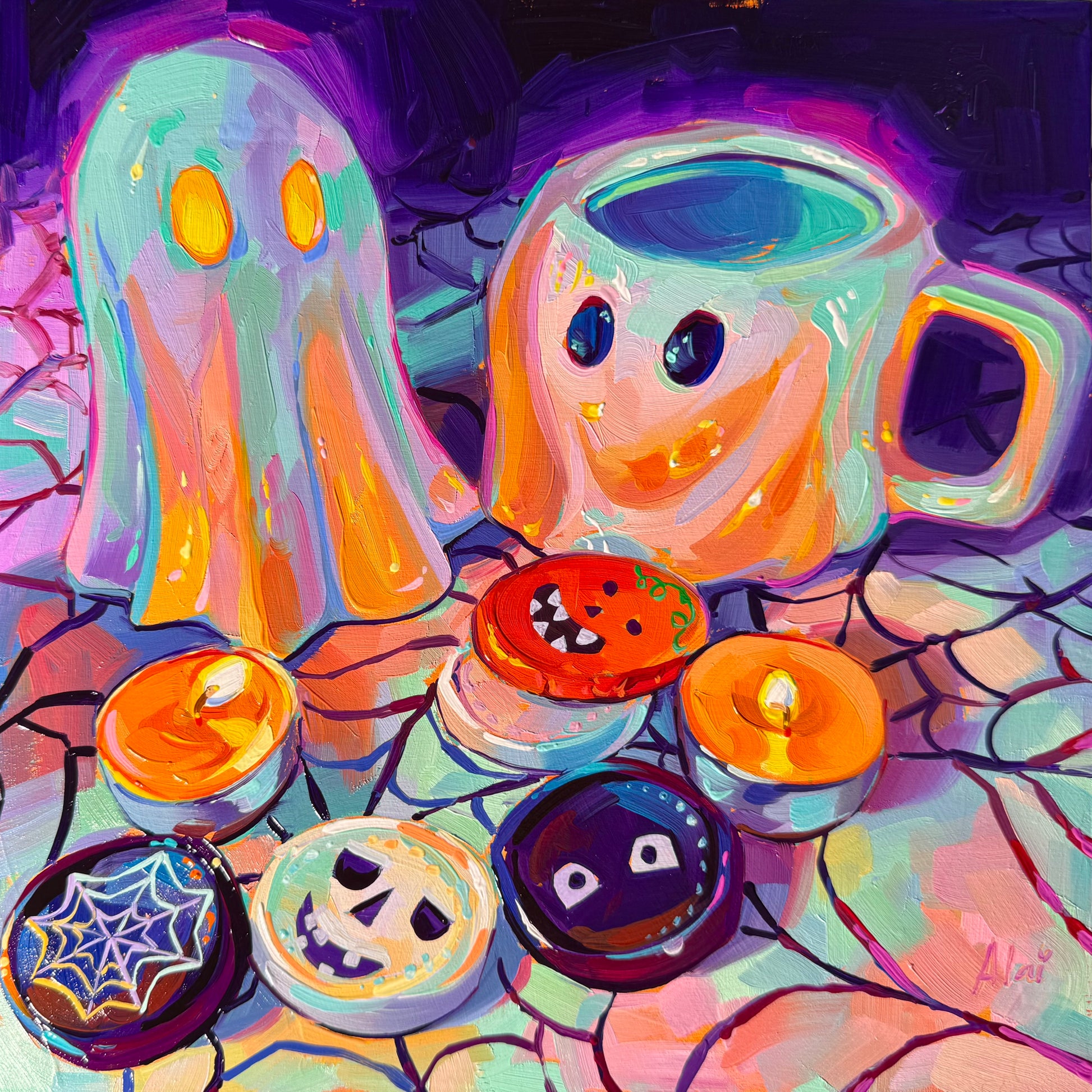 Oil painting on hand primed cradled wood canvas 25x25 cm - 10x10 inches.